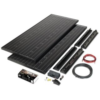 Diese mit CDS-Solarmodulen ausgerüsteten Einbausets beinhalten alles, was benötigt wird. Alle Komplettanlagen werden mit den passenden Spoilerprofilen und der stabilen Dachdurchführung geliefert. Diese aus hochwertigem PUR-Kunststoff hergestellten Bauteile sind vor schädlicher UV-Strahlung sicher und auch extrem witterungsbeständig. Die Solarmodule werden auf den Spoilerprofilen verschraubt. Somit besteht die Möglichkeit, bei Fahrzeugwechsel jederzeit die Anlage abzubauen. Die Halterung selbst wird mit einem speziellen Klebeset auf dem Dach verklebt. Das Verkleben hat den Vorteil, dass keine Befestigungsbohrungen in die Dachhaut gebohrt werden müssen. Jede Anlage ist mit einem MPPT-Solarregler ausgestattet. Diese verfügen über neueste Kennlinien und sind auf Flüssig-/AGM-/Gel-/LiFePO4-Batterien einstellbar. Zudem besitzen sie einen zweiten Ladeausgang (Startbatterie) und einen Anschluss für die Solar-Fernanzeige (Option). Für Fahrzeuge mit EBL-Basisstation (Fahrzeuge der Hymer-Gruppe) liegt außerdem ein passender Anschlusskabelsatz bei.Lieferumfang: CDS-Solarmodule · Solarregler MPPT mit Temperaturfühler · Dach-Spoilerset inkl. Zubehör · Dachdurchführung · Klebeset für Spoilerset und Dachdurchführung · Kabelsatz innen/außen · Kabelsatz für Fahrzeuge mit EBL-Basisstation (Hymer-Gruppe) · Kleinteile · Montageanleitung
